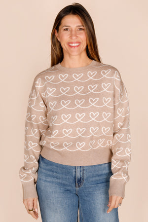 Tan & Cream Heart Sweater