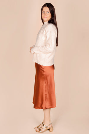 Copper Satin Midi Skirt