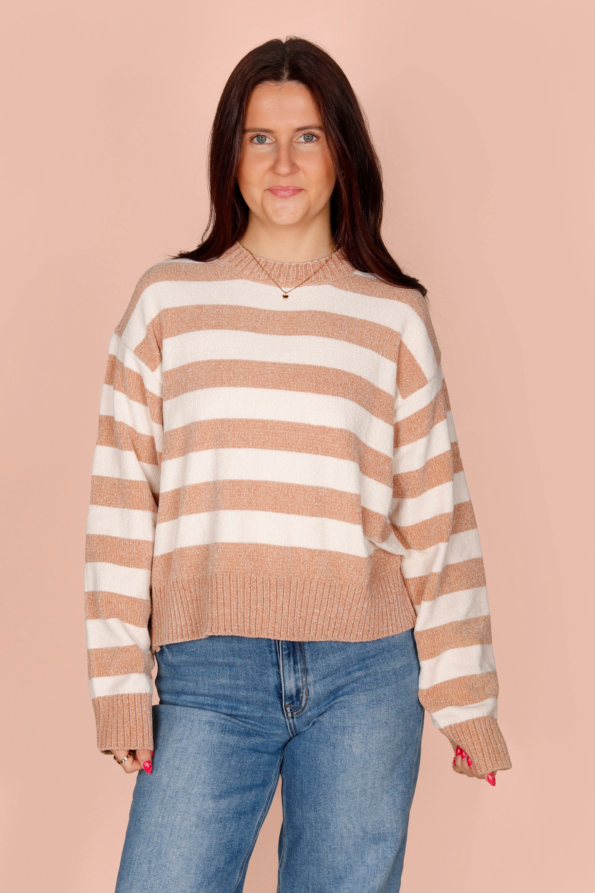 Tan & Cream Striped Sweater